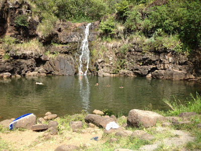 As is natural in Hawaii, I've done a lot of swimming while I've been here. However, swimming here at Waimea Valley falls has been my favorite by far, and I'll tell you why. But first, the hike up to the waterfall: